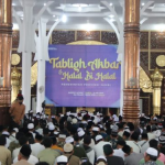 Sebelum ke masjid, Fadhil Arief berjalan kaki sekitar 200 meter dan disambut masyarakat yang berada dilokasi halal bihalal dengan diiringi kompangan.