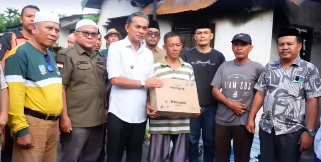 Muarojambi – Wakil Bupati Muarojambi, Junaidi H. Mahir meninjau langsung lokasi musibah kebakaran sekaligus menyerahkan bantuan darurat kepada keluarga terdampak di RT. 10, Desa Simpang Limo, Kecamatan Jambi Luar Kota (Jaluko), pada Minggu, 22 Februari 2026.